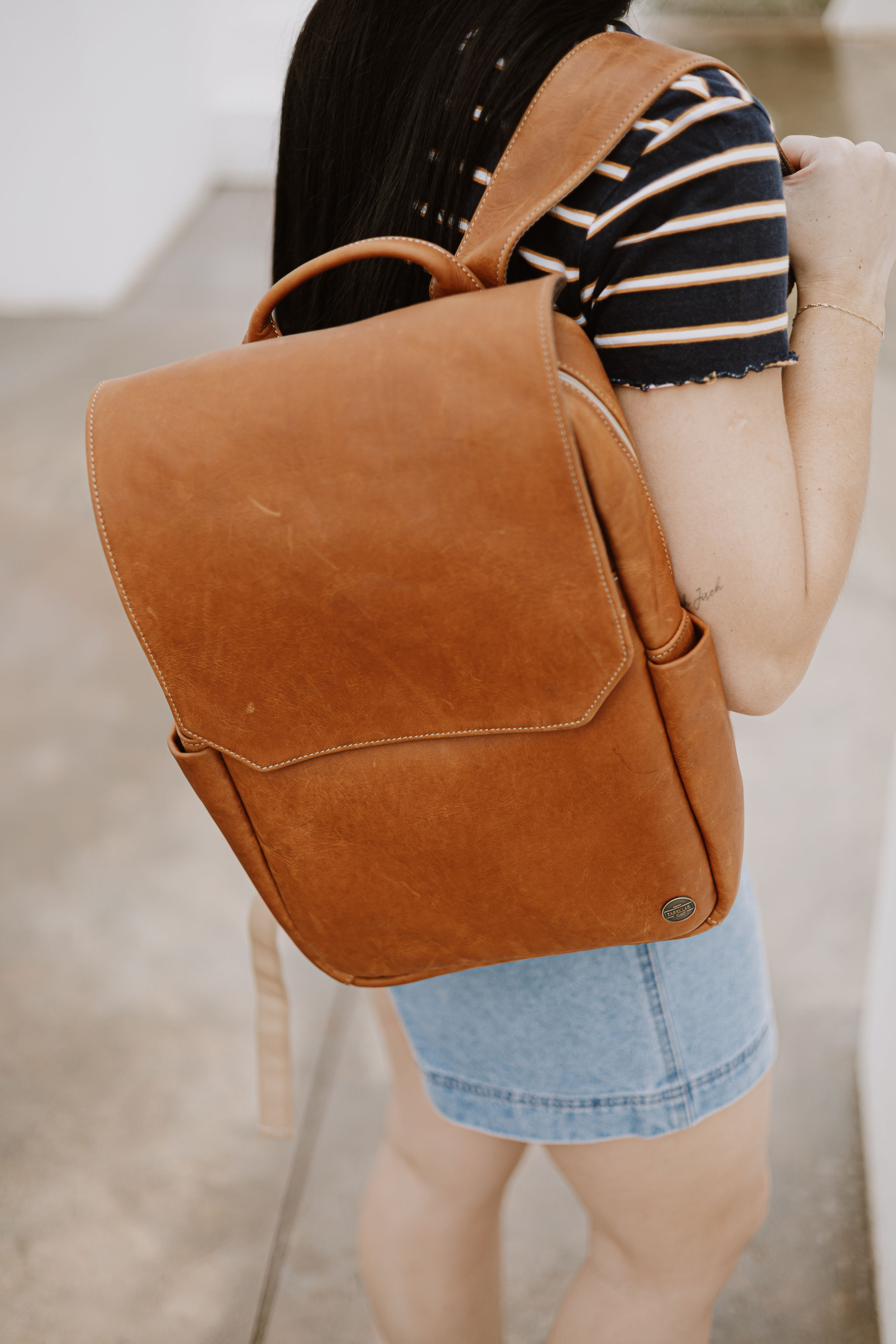 Crafted from premium full grain leather, this backpack is designed for both style and functionality. It features a luggage strap for easy travel, multiple zip compartments, and smart interior dividers to keep everything perfectly organized.